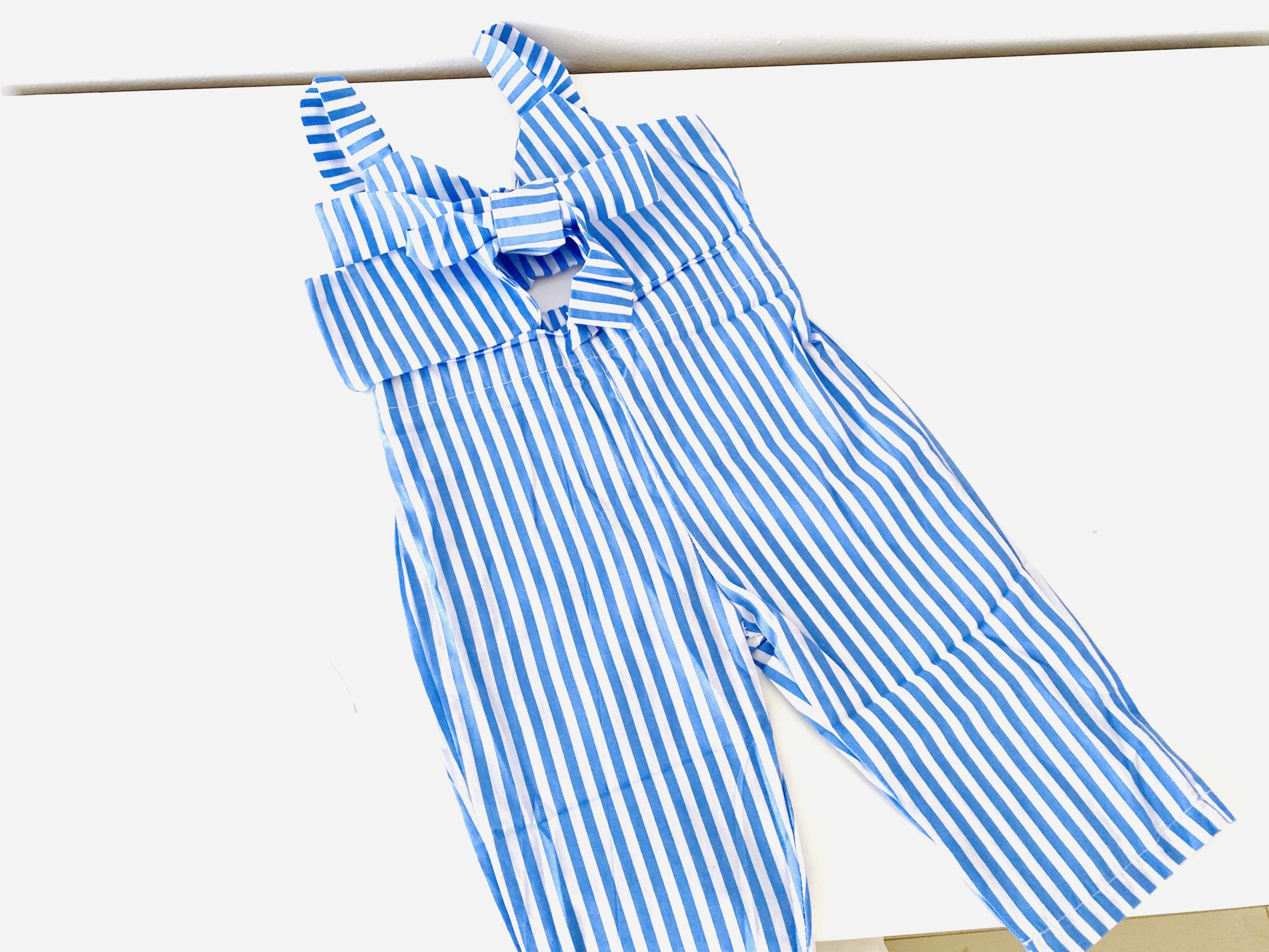 Another item that came to me is this magnificent blue and white striped dungarees with bow on the front. Super tasty, fresh and light!